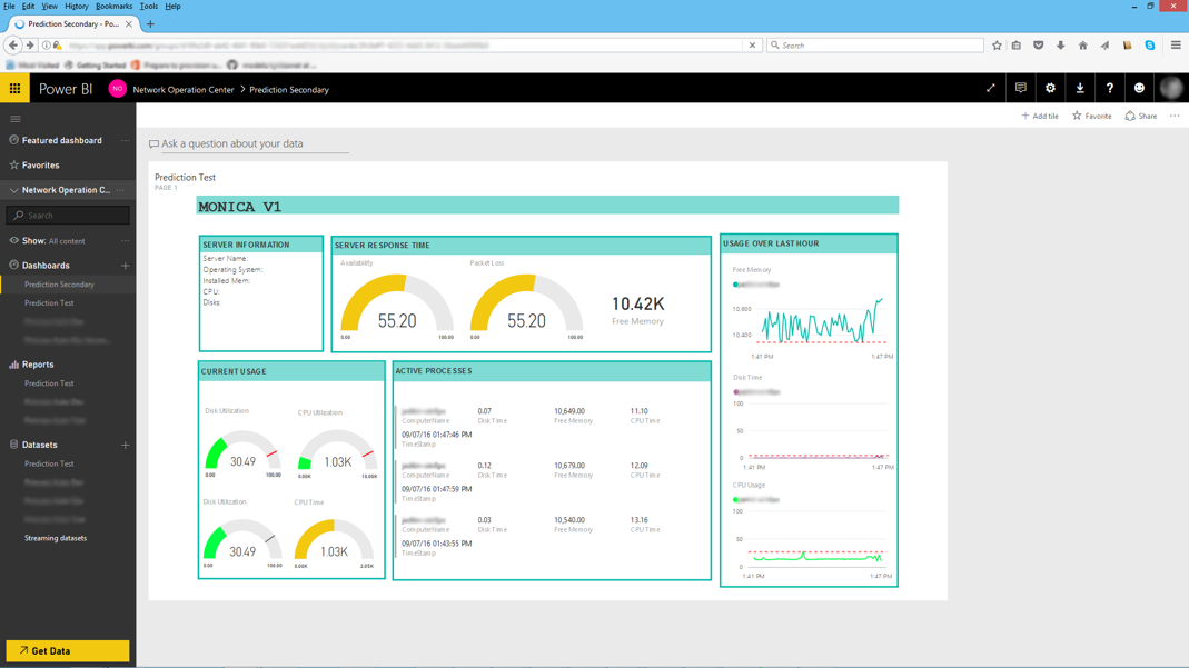 Monica uses a modified LSTM (Long Short-Term Memory) Neural Network that can predict the future state of server resource utilization (CPU, memory, and disk) with high accuracy. Data highlighting an anomaly can be immediately presented to IT staff using commonly available BI tools.